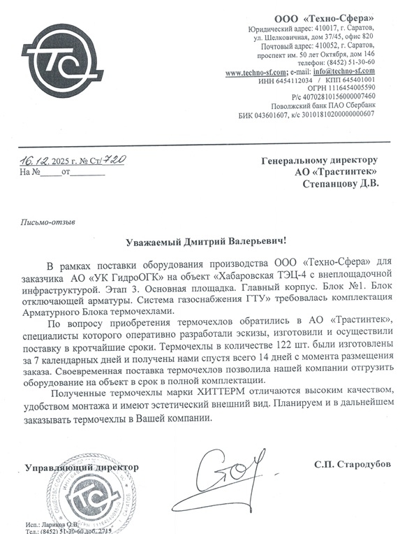 Компания «ЛПСервис» гордится своим вкладом в успешную реализацию проекта «Хабаровская ТЭЦ-4», демонстрируя высокий уровень профессионализма и оперативности. Быстрая реализация заказа на производство 122 термочехлов ярко подчеркивает слаженную работу всех подразделений компании — от разработки и проектирования до производства и логистики. Такой впечатляющий результат стал возможен благодаря продуманному планированию, применению современных технологий и глубокому пониманию потребностей клиента.